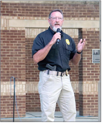THANKING LAW ENFORCEMENT – Lyons Mayor Willis Ne-Smith Jr. thanks law enforcement officers for their service and protection during the 2025 Faith & Blue event.Photo by Makaylee Randolph