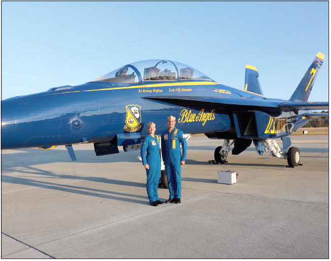 Lieutenant Ronny Hafeza and Lieutenant Commander Lilly Montana flew into the Vidalia Regional Airport on Thursday to meet with Vidalia Onion Festival Air Show officials to ensure that all parties – air show organizers, airfield representatives, community leaders, and the Blue Angels themselves – are on the same page about what to expect and prepare for prior to the show.