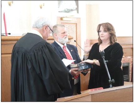 CONTINUING THE STANDARD – New Montgomery County Probate Judge Stacie Randolph said she hopes to continue the standard of excellence which retired Montgomery County Probate Judge Rubie Nell Sanders has set throughout her long tenure in the court. L to R: Oconee Judicial Circuit Superior Court Judge Howard Kaufold, Jason Randolph, Montgomery County Probate Judge Stacie Randolph.Photo by Makaylee Randolph