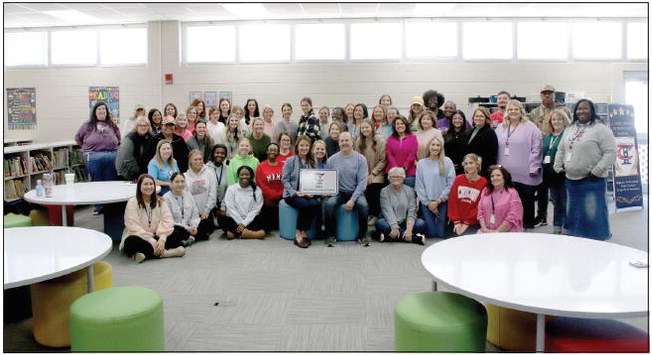 CELEBRATING EXCELLENCE The Lyons Primary School faculty and staff celebrated the school being named a Title I Distinguished School with a small ceremony in the campus media room on January 3.