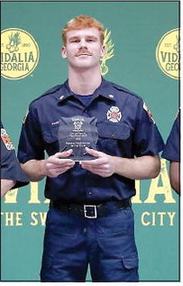 One of the most sentimental awards presented was the Wesley Award, which was given out by the Vidalia Fire Department. The Wesley Award – formerly known as the Fire Chief ’s Award – was renamed this year to honor the in- continued from page