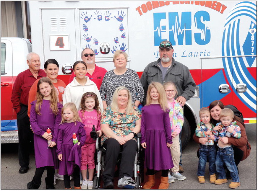 Toombs-Montgomery EMS showed their support for a paramedic who has spent over 20 years saving lives with the agency as they unveiled their new ambulance on Monday, January 5.