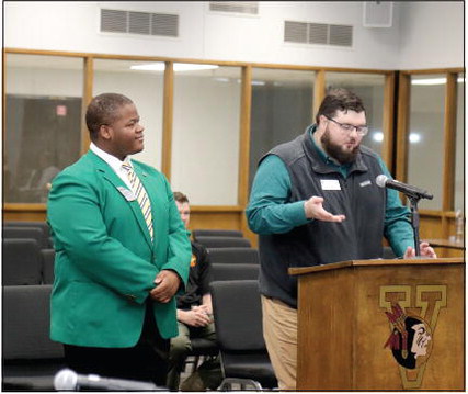 Reid explained that the students would be receiving the Student SPEAR Award – which recognizes students who exhibit character traits that prioritize service, participation, excellence, and other achievement recognitions. She told the students that these awards were not given monthly, but rather when the Board felt that they were truly deserved. “Tonight, we want to give you an opportunity to accept a very rare SPEAR Award for not only your service serving as a governing body or governing positions in those organizations — but also how you demonstrate service, participation, excellence, and achievement every day. We are so proud that you're part of Vidalia City Schools, and we're thankful that you walk a walk every day that shows everyone what it means to be an Indian.”