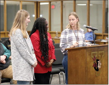 SHARING MANY FIRSTS – During the recognition on January 13, Vidalia High School Family, Career, and Community Leaders of America Advisers Amanda Mosley (right) and Morgan Sager (left) said that they had shared many “first” experiences with Vidalia High School Senior Hillaree Hankerson (center).Photo by Makaylee Randolph
