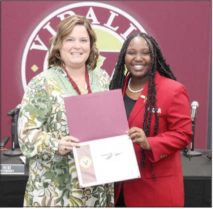 STATE FCCLA PRESIDENT – Vidalia High School Senior Hillaree Hankerson has showcased her leadership skills across the state, as she was elected the Georgia State Family, Career, and Community Leaders of America President. L to R: Superintendent Sandy Reid, Hillaree Hankerson.Photo by Makaylee Randolph