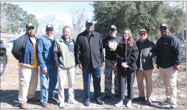 CHECKING ON PROGRESS – Members of the Georgia Trust for Historic Preservation visited the East Park Cemetery in Vidalia on Tuesday, February 24, to check on E.L.I.C.E.’s progress mapping and restoring the area. L to R: Franklin Williams, Carl Wardlaw, Mayor Doug Roper, E.L.I.C.E. Executive Director Ronald Miller, East Park Cemetery Restoration Chair James Jermon, Revolving Fund and Easements Coordinator Charlotte Zinck, Senior Director of Preservation and Legislative Advocacy Ben Sutton, Willie Edwards.Photo by Makaylee Randolph