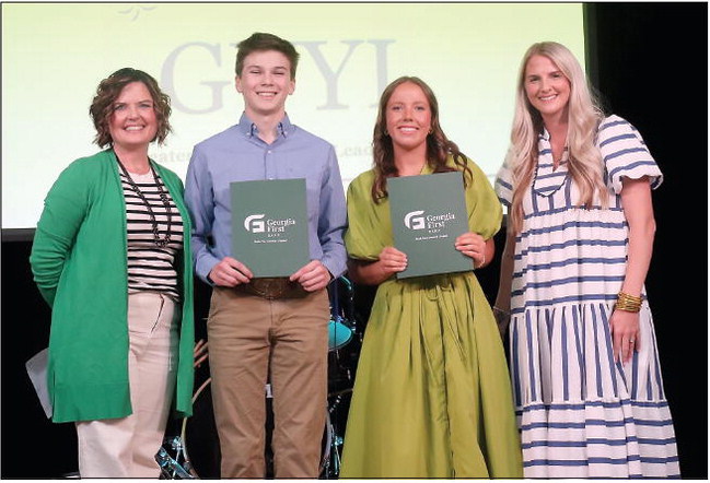SCHOLARSHIP RECIPIENTS – Sadie Berry and Evan Hardeman were each presented with a $500 scholarship by Georgia First Bank. L to R: Georgia First Bank Marketing Officer Heather Mead, Evan Hardeman, Sadie Berry, Greater Vidalia Chamber Director of Operations Amber O’Connor.