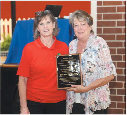 “We loved Deborah. She was an important part of our community. She loved us,” Chamber President Janice Mock emphasized, as she informed the audience that the Alamo Lions Club had recently purchased a brick in her memory, which is currently on display at the Georgia Lions Camp for the Blind campground. Citizens of Distinction As customary during the Wheeler County Chamber of Commerce Annual Meeting, two citizens – one male and one female – were presented with Citizens of Distinction awards for their work in the community.