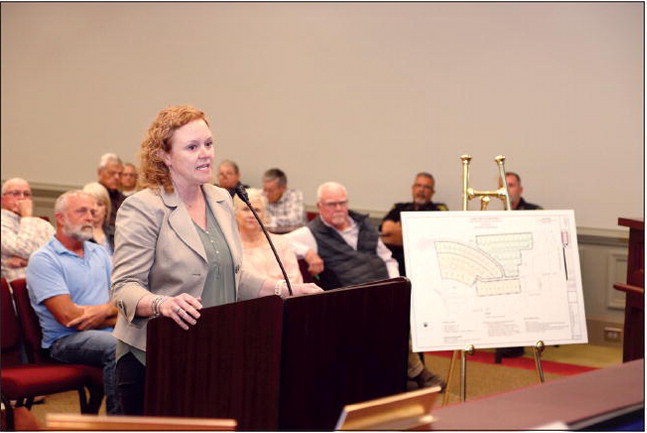 EXPLAINING THE PROJECT – Developer Ingrid Dykes spoke to the Council and the public about the potential Larry Drive Subdivision Project on behalf of her father, stepmother, and brother. (Photo by Makaylee Randolph)Photo by Makaylee Randolph