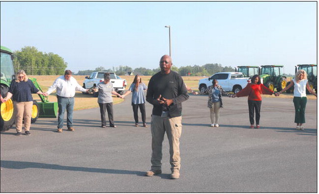Farmers, agribusiness leaders, and community members came together to pray for rain at Lasseter Tractor Company on Thursday morning, April 23.